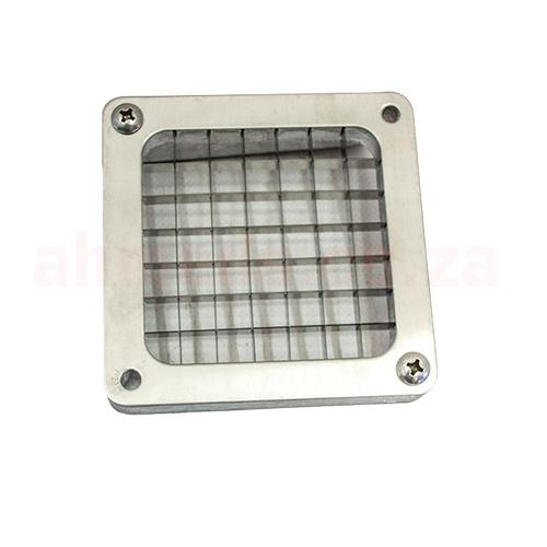 This stainless steel replacement blade grid is made for french fry and chip cutter machines in South Africa. It has a strong aluminum frame with corner screws that keep the blade secure.